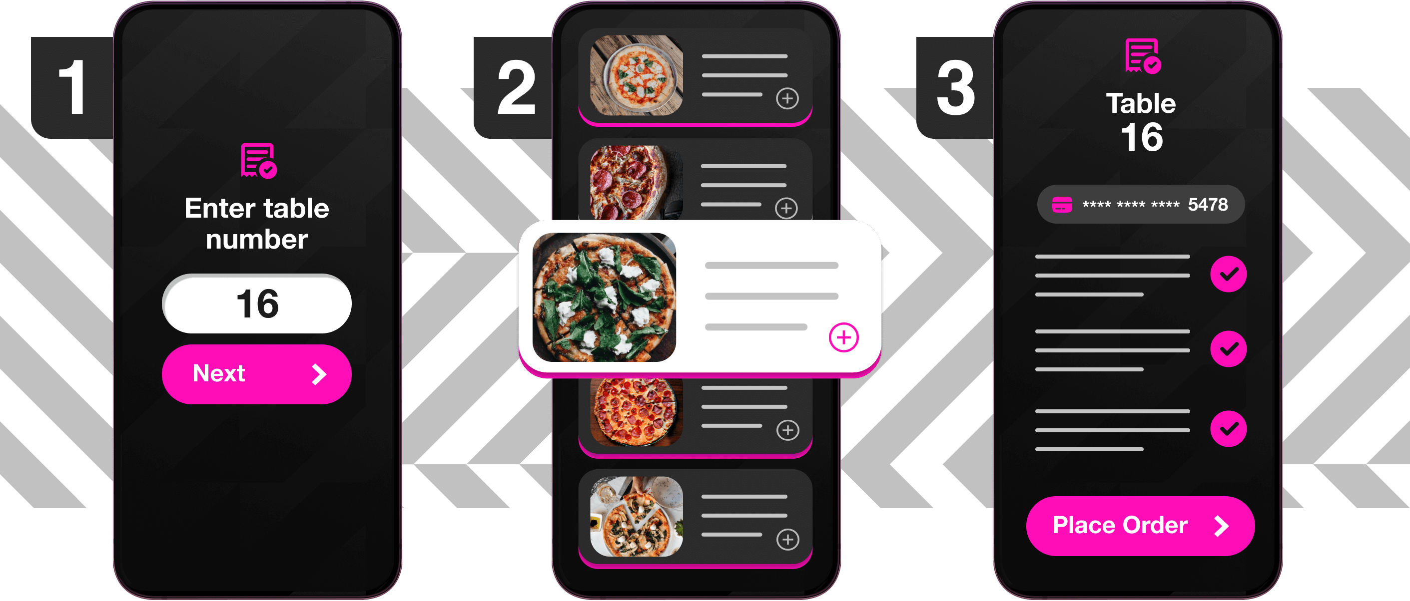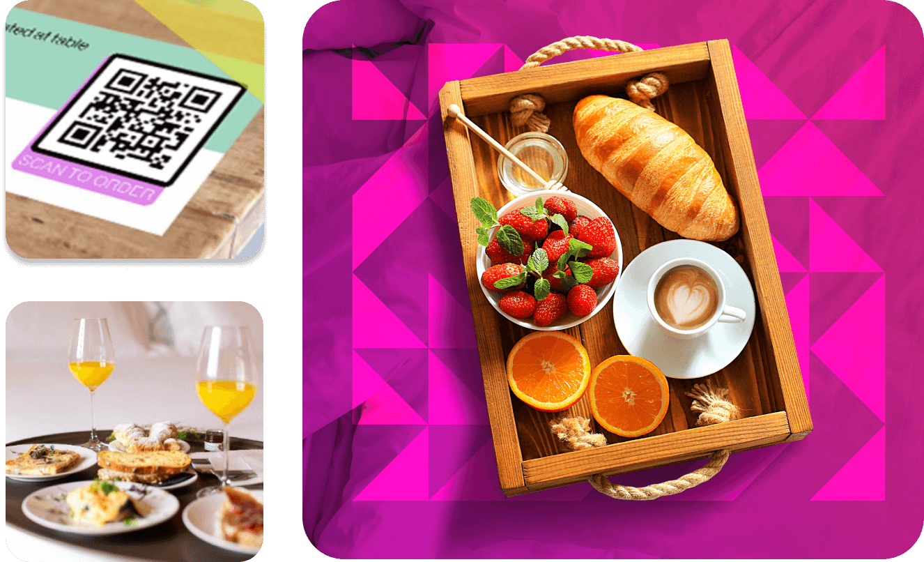 Allow customers to order directly to their table or room by simply scanning a QR code or entering their table or room number. They can browse your menu, order and pay all from their own device! - We provide the QR code and you can print it any way you please.